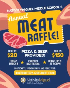 Join the NativityMiguel Middle School of Buffalo’s Junior Board for its Annual Meat Raffle! Take your shot at winning a wide selection of fresh meat from our friends at Federal Meats. We encourage you to bring your friends and family to join in on the fun while raising funds to support our NativityMiguel community.